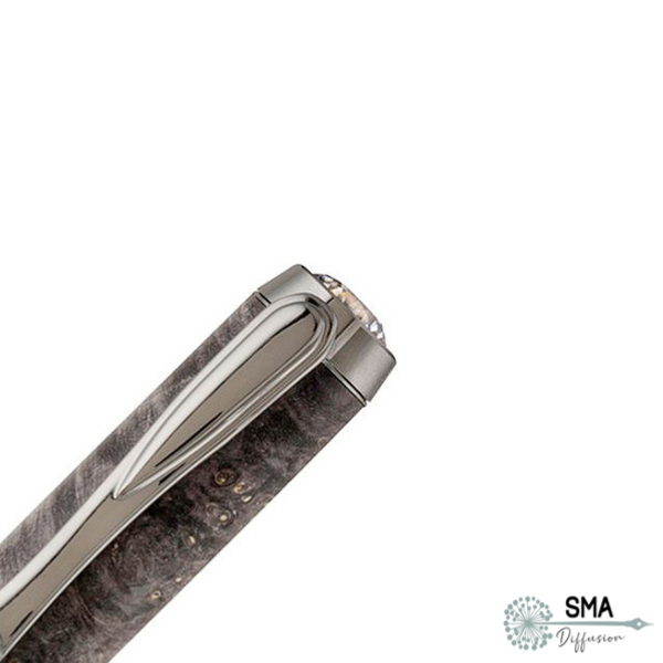 Une pastille ciselée en cristal, rehausse le haut du capuchon, le bas du stylo et également la bague centrale. Finition absolument parfaite pour ce mécanisme voué à la gente féminine.