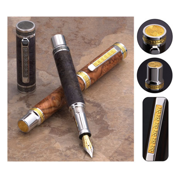 1. Disponible en 2 placages : Rhodium /Titane ou Rhodium/Or -Placage 6 étoiles (******)  Mécanisme Stylo Plume de taille standard, d'une rare élégance et de très haut de gamme, qui ne pourra que vous séduire.